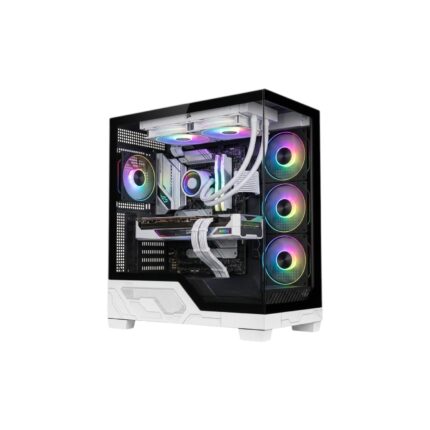 A premium dual-glass showcase chassis designed for high-end builds, offering exceptional aesthetics, airflow potential, and full system visibility with a modern display-focused design. - Cooling: 240mm Corsair iCUE LINK H100i LCD Liquid Cooler