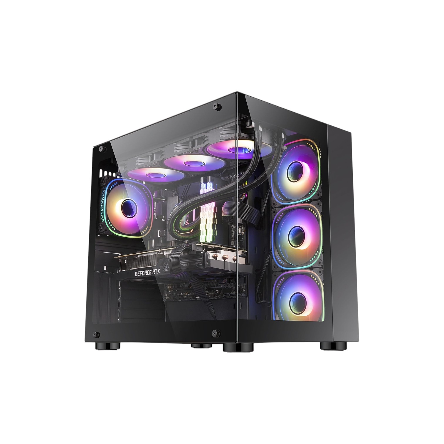 Spacious tempered glass case with a dual-chamber layout, designed for improved cable management and airflow. - Cooling Design: Multi-Fan ARGB Airflow Setup